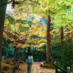 私は紅葉と光の景色に癒され、