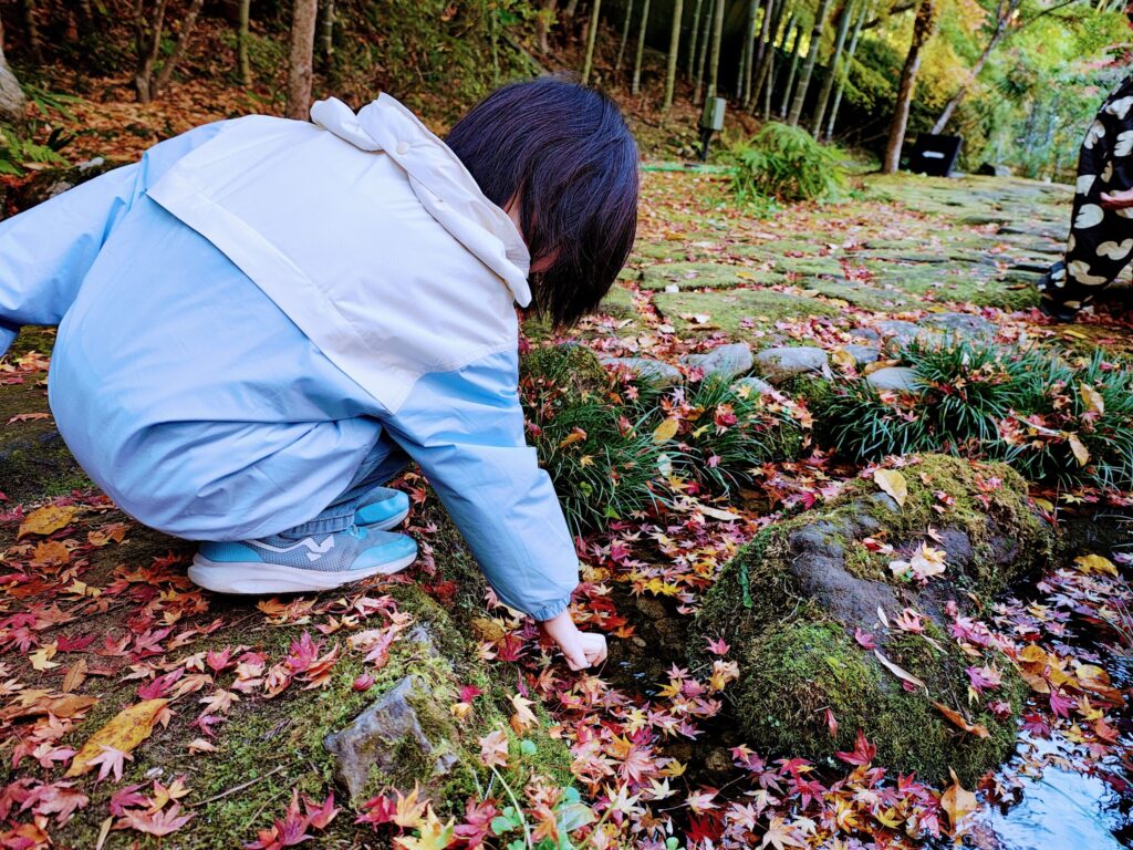 穏やか~な流れの小川に落ち葉を流して遊んだりして、秋ならではの風景を私も楽しみました。