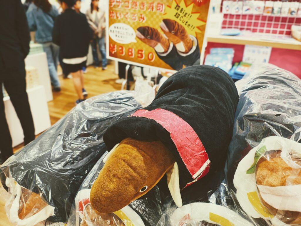 思わず写真を撮った!アナゴのぬいぐるみが面白い