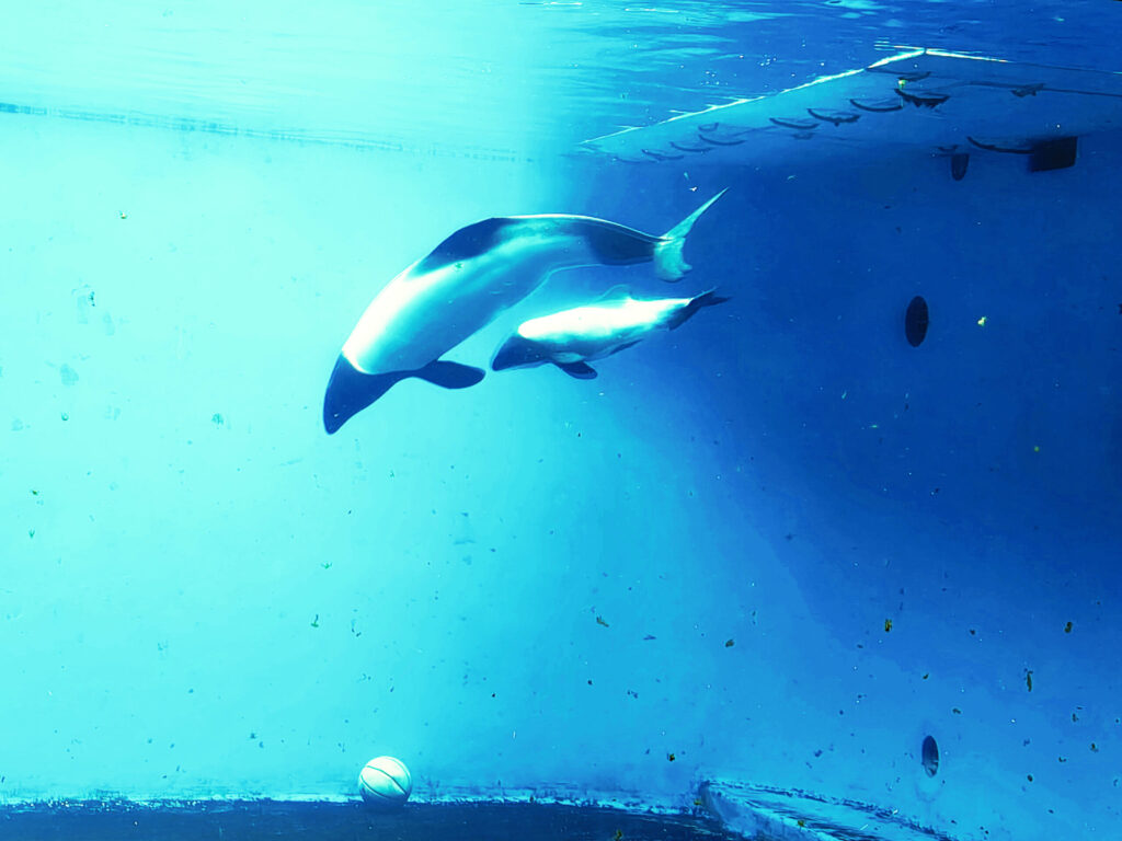 仙台うみの杜水族館で出会える、ちょっと珍しいイルカ「イロワケイルカ」。